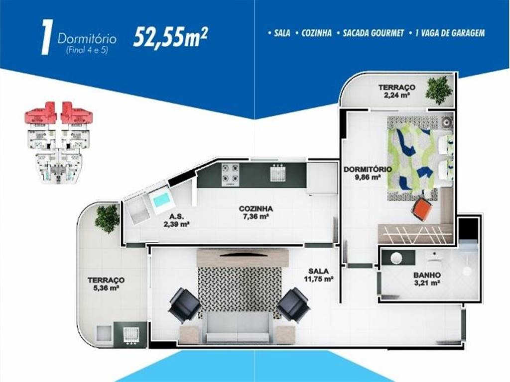 Apartamento com 1 dormitorio a venda, 52 m? por R$ 224.000 - Vila Caicara - Praia Grande/SP